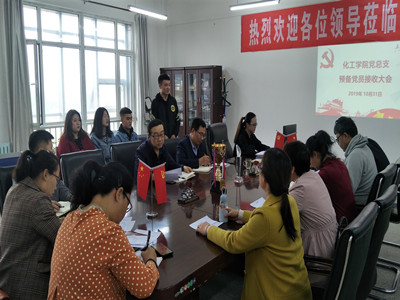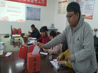 2019年10月31日,化工学院党总支学生党支部在创新楼D405召开接收预备党员大会。学生支部书记王浩主持会议,化工学院全体党员参加了会议。