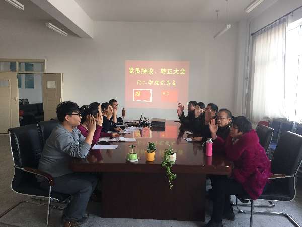 2015年12月24日下午3:00,化工学院党总支在创新楼D403召开了党支部大会,讨论预备党员接收和转正事宜。会议由化工学院党总支书记吴永平老师主持,化工学院党总支11名正式党员参会。