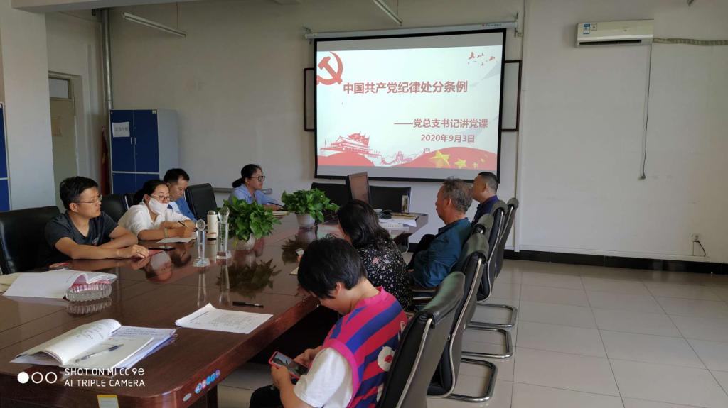 第二支部纪检委员王永丽同志带领大家学习了第一议题,习总书记治国理政-第三卷之一:不断提高党的执政能力和领导水平,包括的内容有:新时代党的建设总要求和新时代如何加强党的建设;之后贺书记给我们讲解了“中国共产党纪律处分条例”,重点讲述了第二章“违纪与纪律处分”,包括第六条到第十五条。