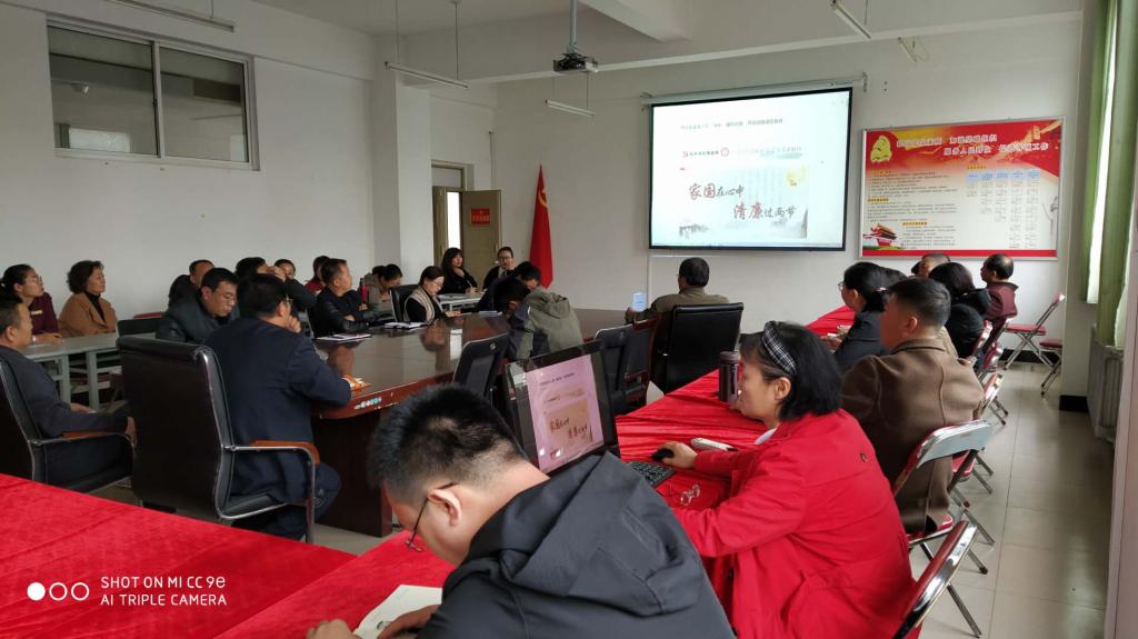2020年10月6日下午5点化工系全体教师在创造楼422召开在中秋、国庆期间纠治“四风”宣传教育学习的会议。